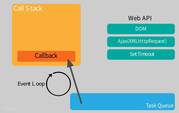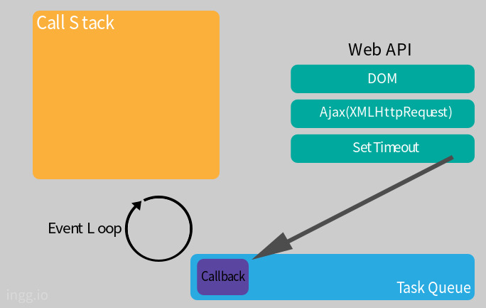 (위 예시에서는 대기 시간을 5초 설정했기때문에 main()까지 pop된 상태에서 콜백함수가 태스크 큐에 푸시되었을 것 입니다.)